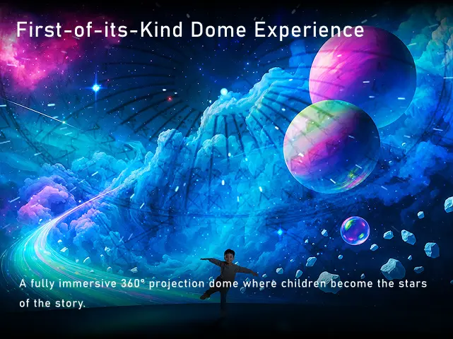 - First-of-its-Kind Dome Experience — A fully immersive 360° projection dome where children become the stars of the story.