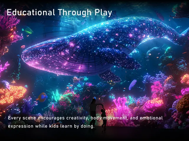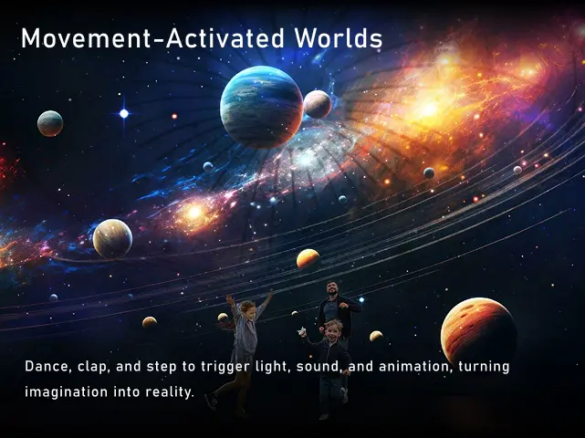 - Movement-Activated Worlds — Dance, clap, and step to trigger light, sound, and animation, turning imagination into reality.