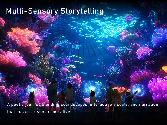 - Multi-Sensory Storytelling — A poetic journey blending soundscapes, interactive visuals, and narration that makes dreams come alive.