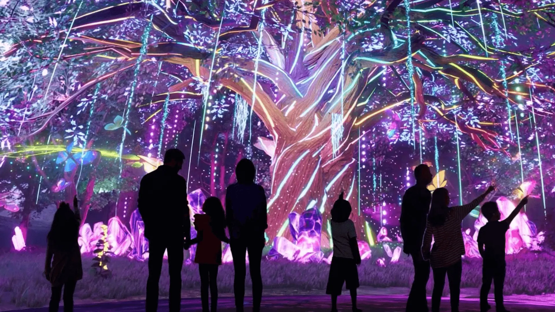 Using torchlight-style spot projections, children explore a mysterious enchanted forest to reveal a hidden magical cat. - Crystal Mountain – Clap & Light Up