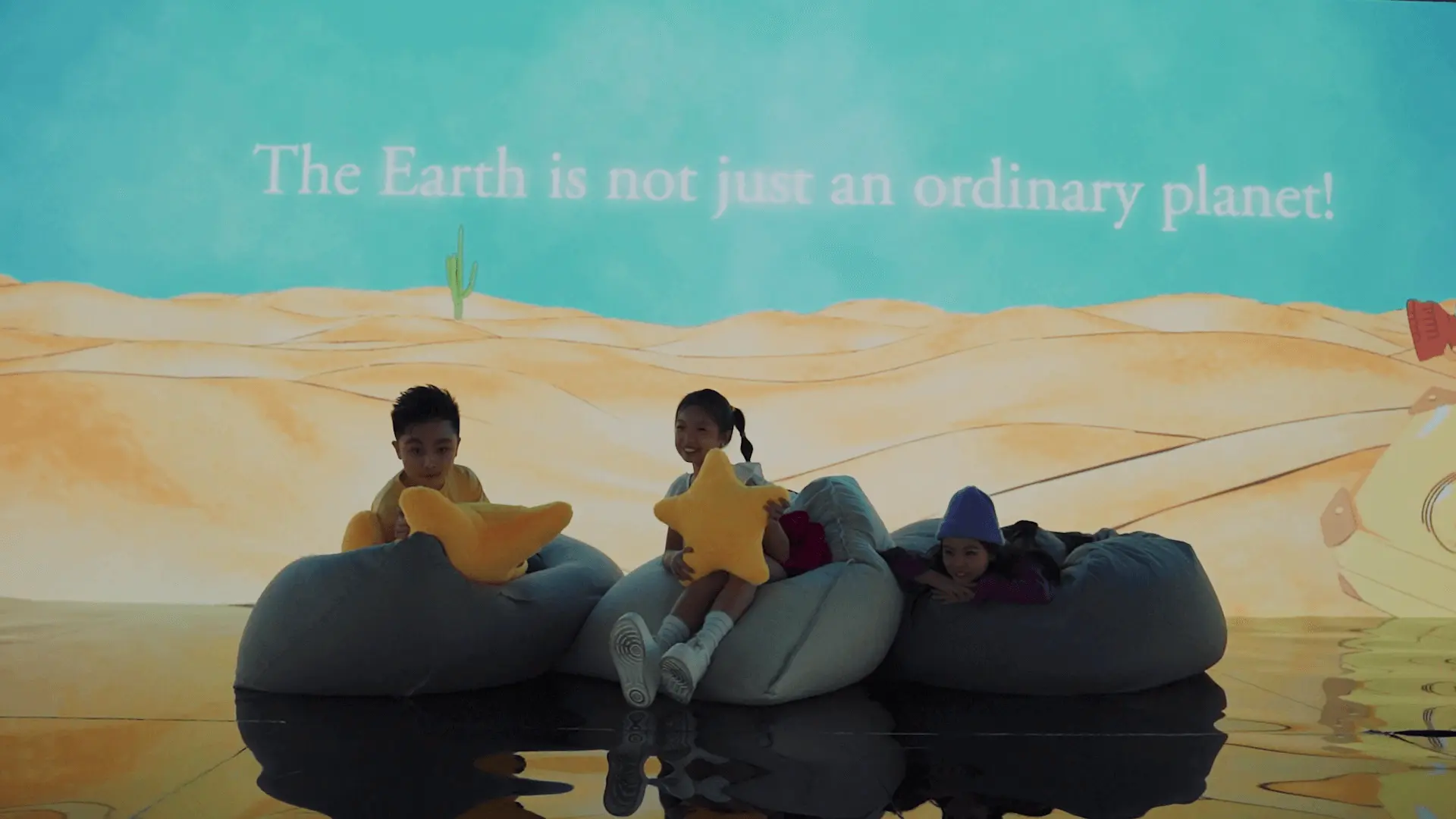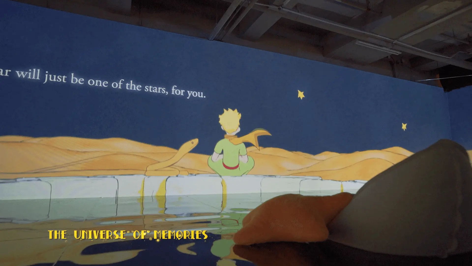 Step into the pages of a giant storybook where the tale comes alive through projected scenes, illustrations, and words that seem to move with you. - Planet B612